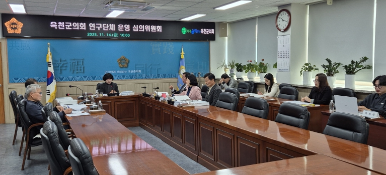 [뉴스앤톡] 옥천군의회는 지난 11월 14일 의원 간담회실에서 2025년 옥천군의회 의원연구단체 운영 심의위원회(위원장 조규룡)를 개최하고 2건의 의원연구단체의 연구 활동 결과보고서를 심의ㆍ의결했다고 밝혔다.