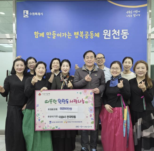 | ▲ 수원시 영통구 원천동 주민자치센터 한국무용반 성금 50만 원 후원 |