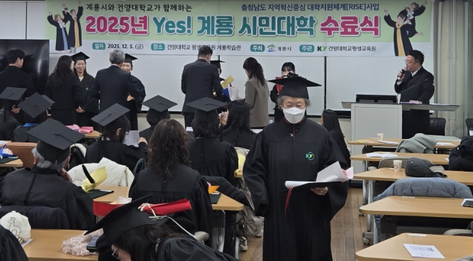 [뉴스앤톡] 계룡시는 지난 5일 건양대와 충청남도 지역혁신중심 대학지원체계(RISE)사업의 일환으로 운영한, ‘2025년도 Yes! 계룡 시민대학 수료식’을 건양대 평생교육원에서 성황리에 개최했다고 밝혔다.