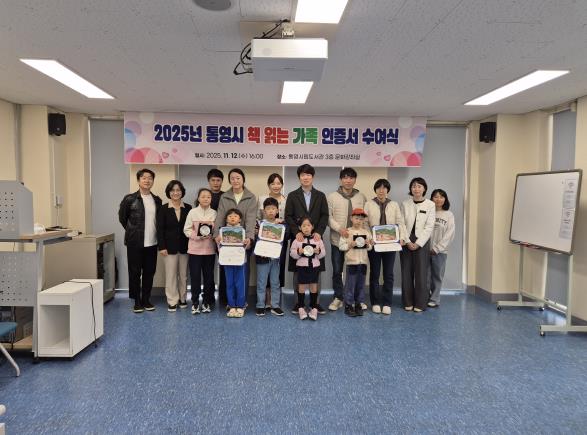 [뉴스앤톡] 통영시는 지난 12일 ‘2025년 통영시 책 읽는 가족 인증서 수여식’을 개최하고, 꾸준히 도서관을 이용하며 독서 생활화 정착에 기여한 가족들에게 감사의 뜻을 전했다.