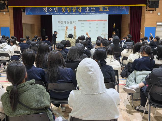 [뉴스앤톡] 청도군은 지난 18일 청도고등학교 강당에서 민주평화통일자문회의 청도군협의회 주관으로 '2025 청소년 통일공감 生生(생생) 토크'를 개최했다고 밝혔다.