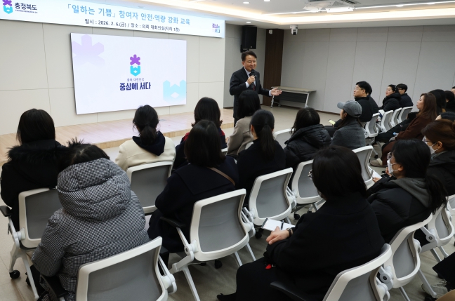 [뉴스앤톡] 충북도는 6일 도내 ‘일하는 기쁨’ 공동작업장 참여자 80여 명을 대상으로 자산관리 특강, 양성평등교육 및 도지사와의 대화를 포함한 참여자 역량강화 및 소통 행사를 개최했다.