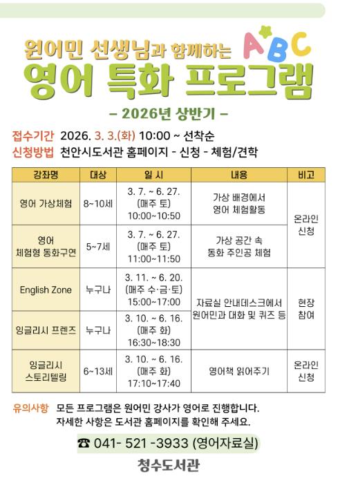 접수는 오는 5일부터 천안시도서관 누리집에서 할 수 있다.