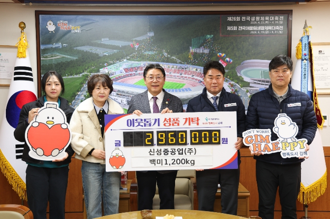 [뉴스앤톡] 김해시는 5일 신성중공업(주)에서 제2공장 건립을 기념해 쌀 100포(1,200kg, 296만원 상당)를 기탁했다고 밝혔다.