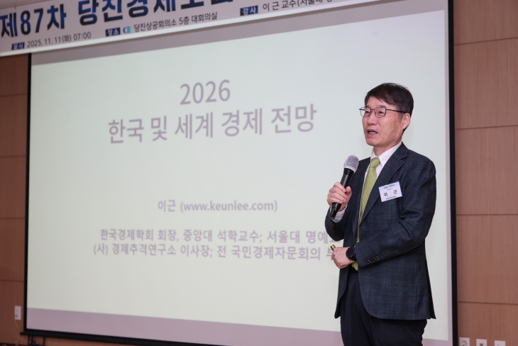 이번 세미나는 서울대학교 경제학부 이근 석좌교수가 초빙강사로 나서‘2026 한국 경제 전망’이라는 주제로, 한국경제가 직면한 구조적 과제를 총체적으로 분석하고 고금리, 고물가, 환율 변동성 등 국내외 경제 위기 속에서 우리가 나아갈 방안을 모색하기 위해 마련했다.
