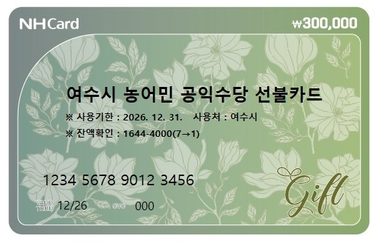 [뉴스앤톡] 여수시는 2026년부터 농어민 공익수당 지급방식을 기존 ‘여수사랑상품권(지류형)’에서 ‘선불카드’로 전환한다고 밝혔다.