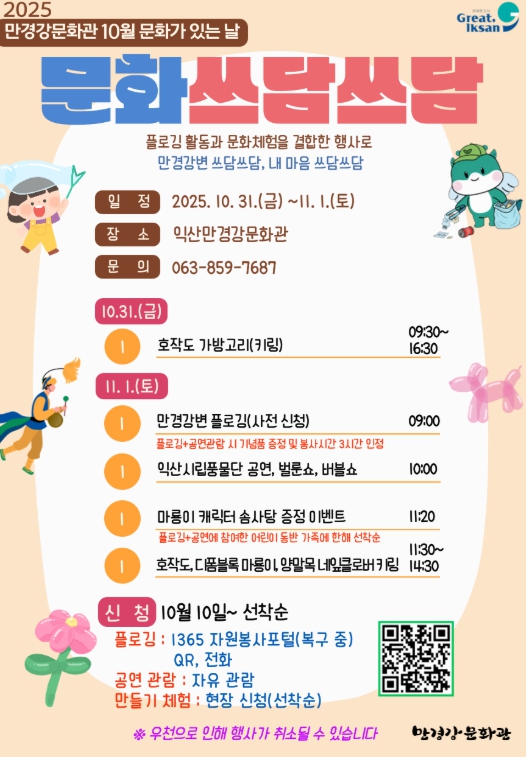 이번 행사는 만경강을 중심으로 환경보호 활동인 플로깅(조깅하며 쓰레기를 줍는 활동)과 다채로운 문화체험을 결합해 시민들에게 의미 있는 경험을 선사할 예정이다.