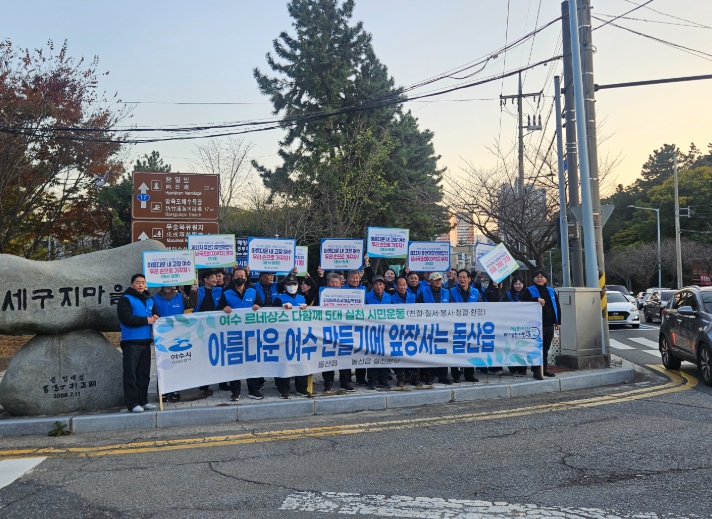 [뉴스앤톡] 여수시 돌산읍은 지난 19일 세구지삼거리 일원에서 여수 르네상스 다함께 5대 실천 시민운동 캠페인을 전개하며 2026여수세계섬박람회 성공 개최에 힘을 보탰다.