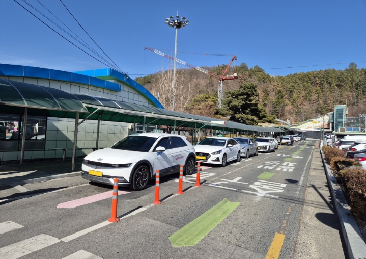 | ▲ 밀양역 택시승강장에서 대기 중인 택시들의 모습 |