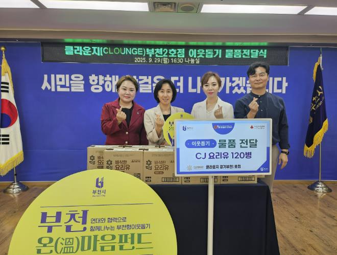 [뉴스앤톡] 부천시는 지난 29일 클라운지(CLOUNGE) 경기부천2호점에서 추석을 맞아 지역 내 무료급식소 지원을 위한 이웃돕기 물품을 기탁했다고 30일 밝혔다.