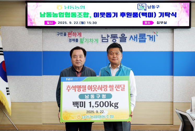 [뉴스앤톡] 인천시 남동구는 남동농업협동조합(조합장 한윤우)로부터 취약계층을 위한 추석맞이 백미 1,500kg(450만 원 상당)을 기탁받았다고 24일 밝혔다.