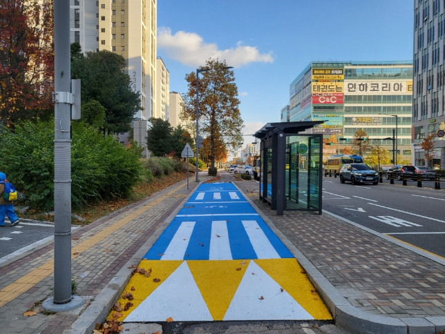 이번 사업은 버스정류장과 접해있는 자전거도로 때문에 버스 이용자와 자전거의 동선이 겹치는 등 충돌 가능성이 있어, 보행자와 자전거가 안전하게 교차할 수 있는 공간을 마련해 보행 안전을 한층 더 강화하는 데 목적을 뒀다.