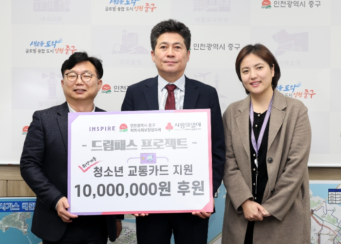 [뉴스앤톡] 인천시 중구는 최근 인스파이어 엔터테인먼트 리조트가 ‘중구 드림패스 프로젝트’를 위한 1,000만 원의 후원금을 기탁했다고 19일 밝혔다.