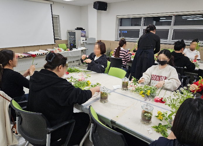 이번 교육은 육아와 가사로 지친 양육자들에게 정서적 치유와 휴식의 기회를 제공하기 위해 마련됐다. 교육에 참여한 양육자들은 전문 원예심리상담가의 지도에 따라 흙과 식물을 직접 만지며 자신만의‘반려식물 유리병 정원’을 완성하고 스스로에게 선물하는‘미니 꽃다발’을 제작하는 시간을 가졌다.