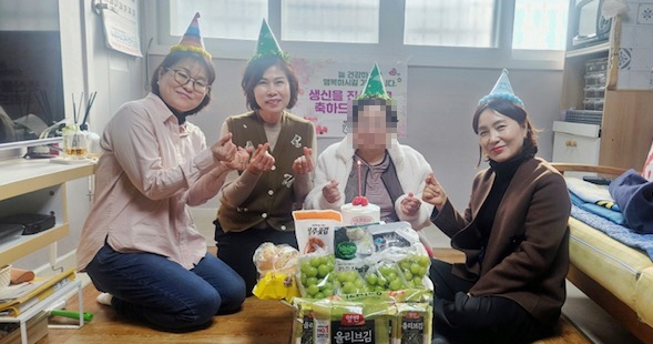이번 행사는 통장자율회의 소모임‘만수무강’이 케이크와 과일 등 음식을 준비해 해당 월에 생일인 홀몸노인을 방문해 작은 생신 잔치를 진행했다.