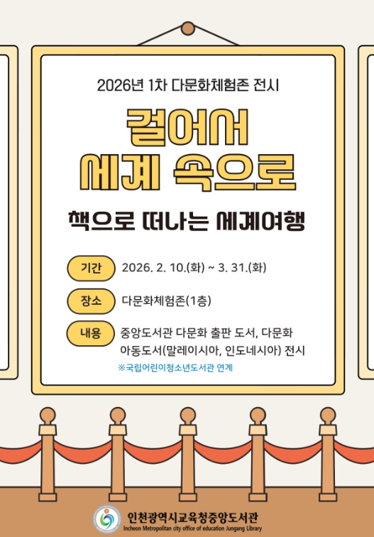 [뉴스앤톡] 인천광역시교육청중앙도서관은 2월 10일부터 3월 31일까지 1층 다문화체험존에서 ‘책으로 떠나는 세계여행’ 전시를 개최한다.