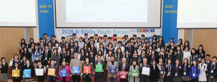 [뉴스앤톡] 인천광역시교육청은 16일 겐트대학교 글로벌캠퍼스에서 ‘포스트-SDGs 시대, 청소년이 여는 지속가능발전 글로벌 어젠다’를 주제로 ‘2025 K-SDGs 청소년 포럼’을 개최했다.