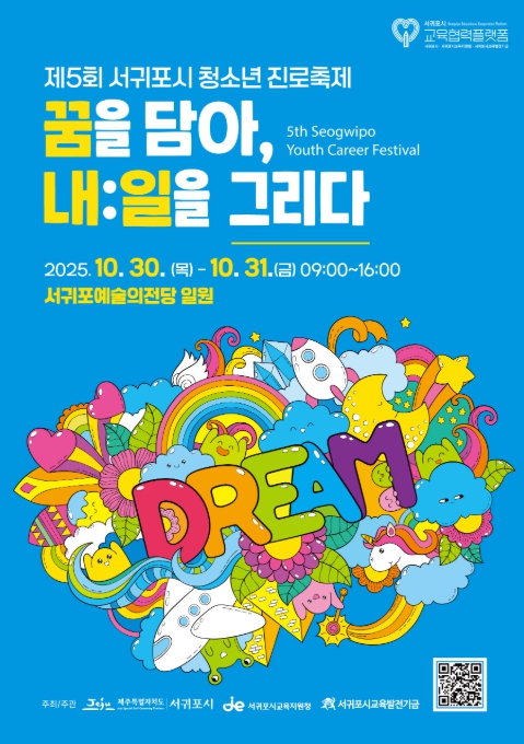 이번 진로축제는 청소년들이 자신의 꿈을 담아 ‘내:일’을 그리는 다채로운 진로탐색과 직업체험의 장으로 마련됐으며 서귀포시교육지원청과 서귀포시, (재)서귀포시교육발전기금이 공동으로 주최한다.