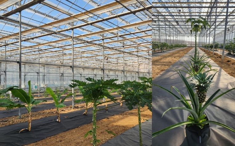 | ▲ 아열대작물(왼쪽 바나나, 파파야 / 오른쪽 파인애플) |