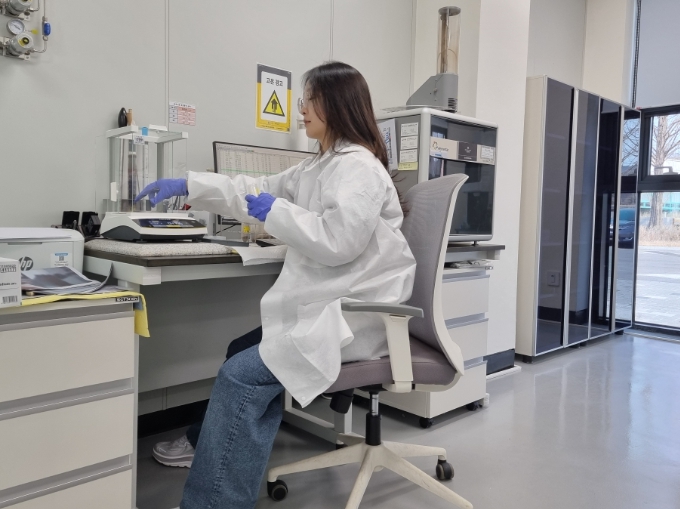 ▲ 농산물안전분석센터 토양검정 담당자가 토양 유기물을 분석하고 있는 모습