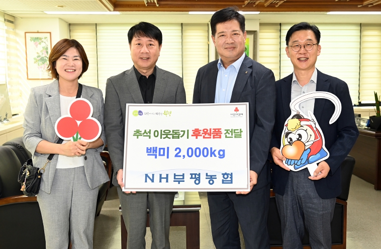 부평농협(조합장 최영민)은 매년 명절마다 꾸준히 백미 2천kg을 후원하며 지역사회 나눔을 실천해 왔다. 지난 2011년부터 올해 1월까지 총 6만9천kg(약 1억6천5백만원 상당)의 백미를 기탁했으며, 지난 2020년에는 코로나19 극복을 위해 성금 1천만 원을 전달하는 등 지역사회 공헌 활동을 이어오고 있다.
