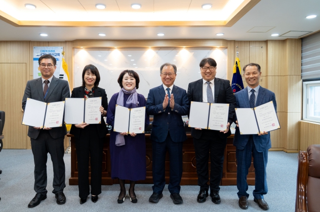 | ▲ 발령장 수여 모습 : 좌측부터 신동훈 장학관(에코4초), 박혜란 원장(에코8유), 안부희 원장(에코4유), 김석준 교육감, 변정현 장학관(신연초), 김진기 교감(에코특수) |