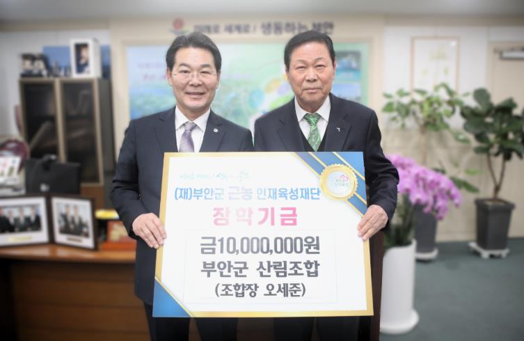 [뉴스앤톡] 부안군산림조합은 지난 13일 부안군근농인재육성재단을 방문해 지역 인재 육성을 위한 장학금 1천만 원을 기탁했다.