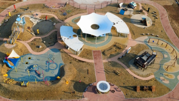 실외는 △상상 속 놀이가 펼쳐지는 ‘꿈마당’ △자연 친화적인 ‘모험마당’ △높이가 있는 나무집 형태의 ‘하늘마당’ △물과 모래를 연계한 비구조화 놀이공간인 ‘흙마당’ △함께 어울리며 놀이하는 ‘옹기종기마당’ 등으로 돼 있다.