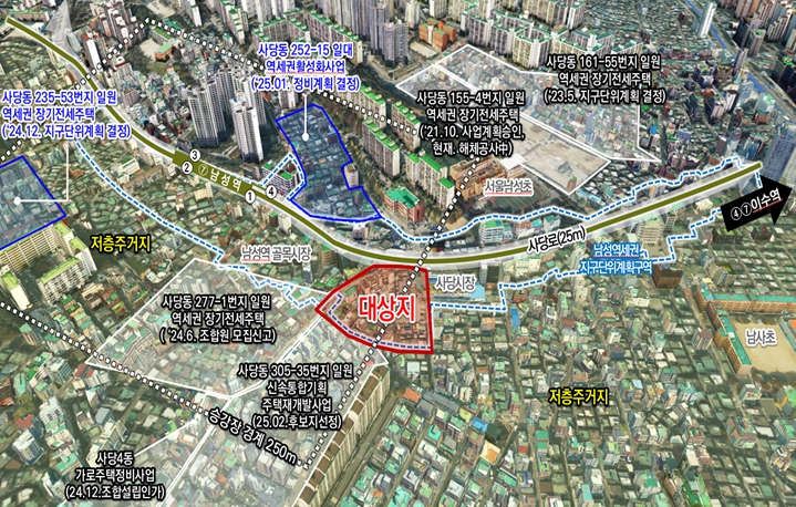 특히 용도지역 상향에 따른 공공기여로 동작구 제2청사 민원센터, 보건지소(현 사당보건분소 이전), 실버케어센터, 공영주차장(30면) 등이 함께 조성된다. 이를 통해 남성역을 중심으로 한 주민편익 기능이 크게 강화될 것으로 기대된다.