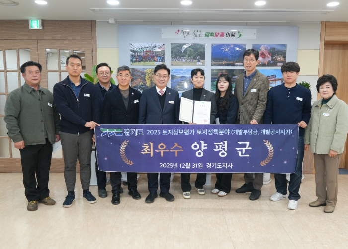 [뉴스앤톡] 양평군은 경기도가 주관한 ‘2025년 토지정보 종합평가’에서 토지정책 분야(개발부담금 및 개별공시지가) 최우수 기관으로 선정됐다고 밝혔다.
