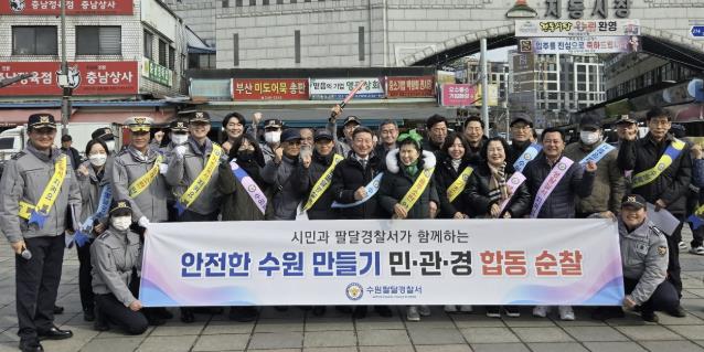 | ▲ 수원시 팔달구 행궁동, 팔달경찰서와 설맞이 전통시장 ‘민·관·경 합동 순찰’ 펼쳐 |