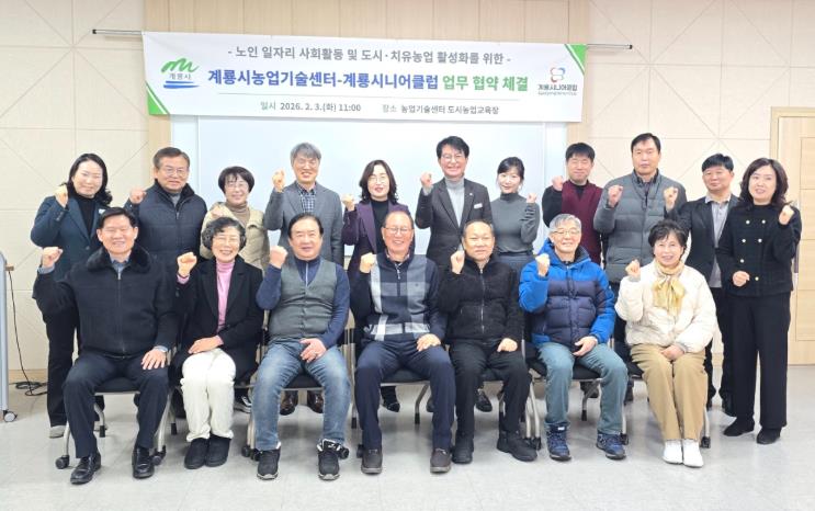 [뉴스앤톡] 충남 계룡시는 3일 농업기술센터와 계룡시니어클럽이 노인 일자리 및 도시․치유농업 활성화를 위한 업무협약을 체결했다고 밝혔다.