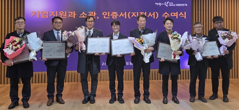 [뉴스앤톡] 영천시는 지난 26일 경북도청에서 열린 ‘2025년 경상북도 PRIDE기업 인증서 수여식’에서 지역 기업인 한호에코스티㈜와 ㈜우성케미칼이 선정됐다고 밝혔다.