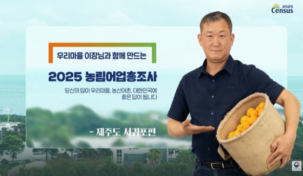 서귀포시 성산읍 삼달리는 2024년 인기리에 방영된 ‘웰컴 투 삼달리’의 촬영지로 선정되어 많은 인기를 얻은 명소가 된 곳이다. 이번 ‘2025 농림어업총조사’ 모델로 선정된 고경권 이장은 삼달2리 이장으로 활동하며 농·어가 일손 돕기, 마을 행사 지원 등 각종 현장에서 주민들과 긴밀히 소통해 온 공을 높이 평가하여 실제 농림어업 현장의 목소리를 전달할 적임자로 선정됐다.