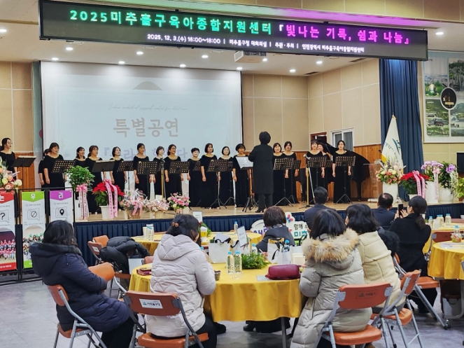이어 지역 보육 발전에 기여한 이들에게 감사패 전달이 진행됐으며, 센터의 연간 핵심 성과를 정리한 ‘2025 미추홀구 육아종의 빛나는 기록’이 소개됐다.