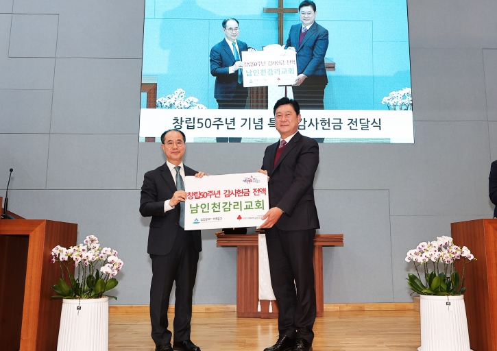 이상길 담임목사는 “성도들의 마음을 담아 드린 창립 50주년 감사헌금이 지역사회에서 어려움을 겪고 있는 이웃들에게 실질적인 도움이 되길 바란다.”라며, “앞으로도 취약계층과 소외된 이웃들을 위한 지원과 사역을 지속적으로 이어 가겠다.”라고 전했다.
