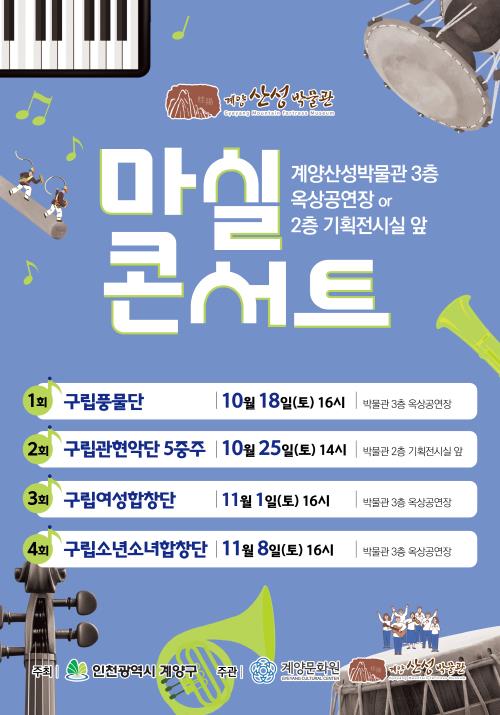 [뉴스앤톡] 인천광역시 계양구는 10월 18일부터 11월 8일까지 매주 토요일 계양산성박물관에서 가을 정취를 만끽할 수 있는 문화예술 행사 ‘마실콘서트’를 개최한다.
