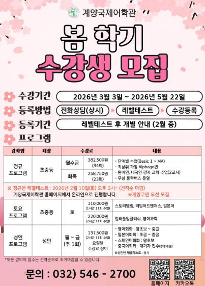 | ▲ 계양국제어학관, 2026년 봄 학기 수강생 모집 |