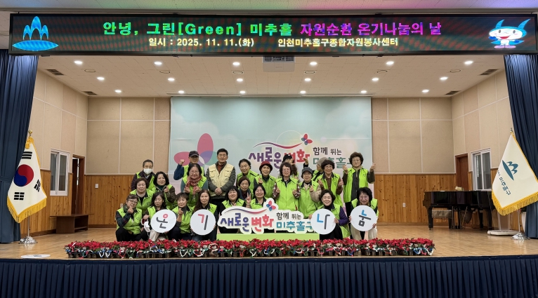 [뉴스앤톡] 인천 미추홀구종합자원봉사센터(센터장 유중형)는 지난 11일 구청 대회의실에서 ‘2025 안녕, 그린미추홀 – 자원순환 온기 나눔의 날’을 진행했다.