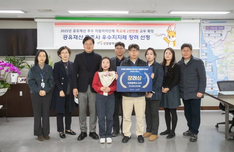 [뉴스앤톡] 인천 서구는 지난 22일 행정안전부 주관으로 정부서울청사에서 열린 ‘2025년 공유재산 우수 지방자치단체’ 시상식에서 공유재산 총조사 부문에서 뛰어난 성과를 거두며 우수 지자체로 선정되어 특별교부세 2천만 원을 교부받을 예정이다.
