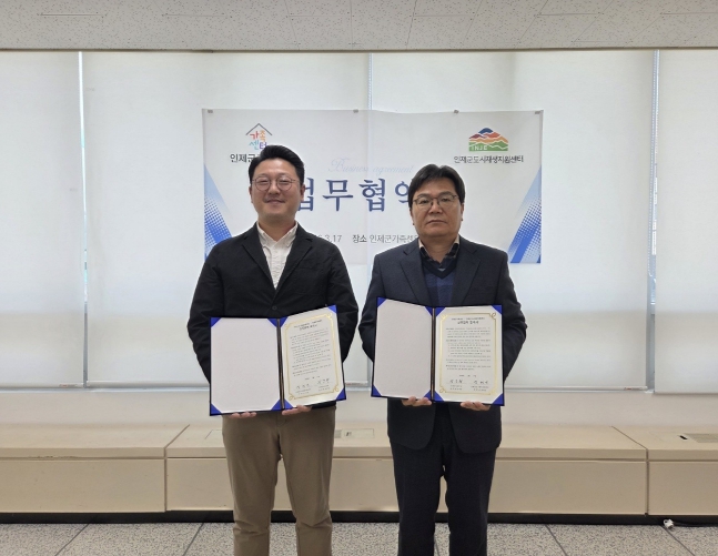 [뉴스앤톡] 인제군가족센터와 인제군도시재생지원센터는 3월 17일 지역사회 공동발전과 지속가능한 성장 기반 마련을 위한 업무협약(MOU)을 체결했다.