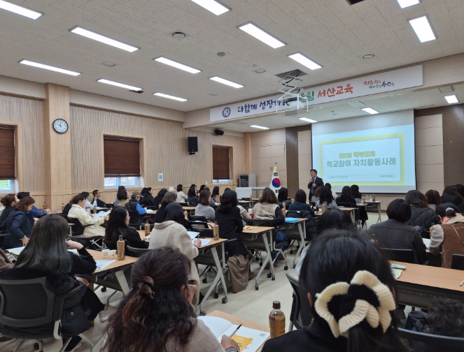 [뉴스앤톡] 충청남도서산교육지원청은 12월 10일 어울림실에서 서산 관내 54교 학부모회장과 학부모 70여 명이 참석한 가운데 학부모 교육 참여 사례 나눔 자리를 진행했다.