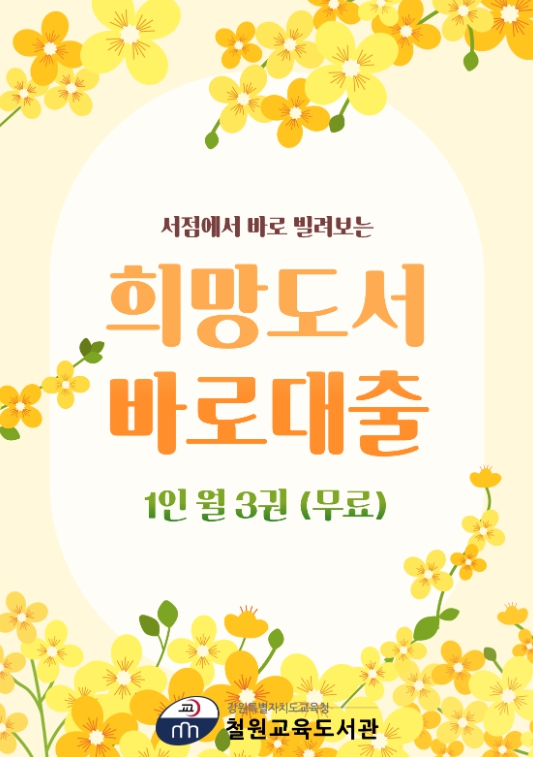 [뉴스앤톡] 철원교육도서관은 3월부터 철원 관내 지역 서점 2곳과 함께 ‘희망도서 서점 바로대출 서비스’를 운영한다.