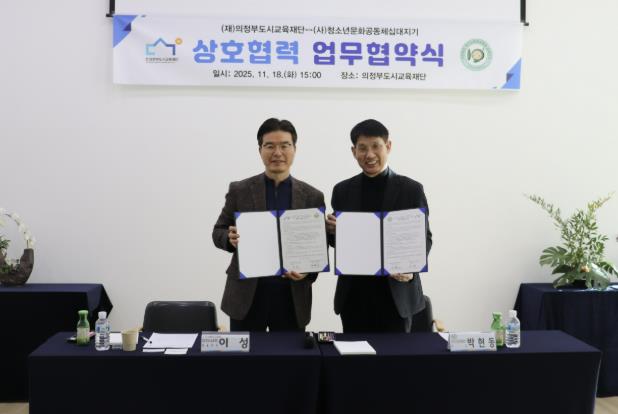[뉴스앤톡] 의정부도시교육재단은 지난 11월 18일, 사단법인 청소년문화공동체 십대지기와 위기청소년을 조기에 발굴하고 지원하기 위한 업무협약(MOU)을 체결했다.