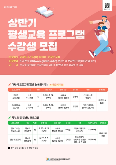 | ▲ 봉화도서관 상반기 평생교육·토요 늘봄도서관 수강생 모집 |