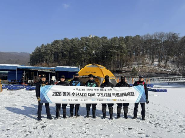 [뉴스앤톡] 파주소방서는 2월 2일부터 4일까지 3일간 마장호수 일원에서 겨울철 수난사고에 대비한 ‘동계 수난구조 특별교육훈련’을 실시했다. 이번 훈련은 혹한기 수난 현장의 특수성과 위험성을 고려해 구조대원의 신속한 대응과 구조 전문성 강화를 목표로 진행됐다.