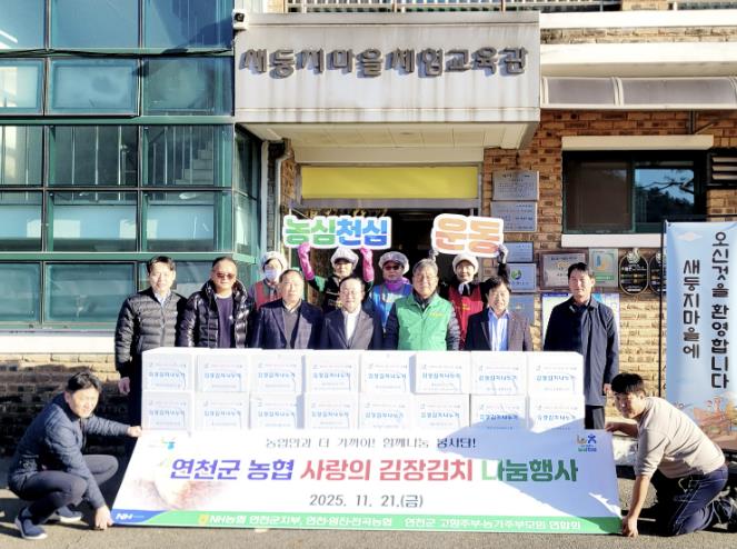 [뉴스앤톡] NH농협 연천군지부는 연천군 관내 임진농협, 연천농협, 전곡농협과 21일 백학면 새둥지마을에서 사랑의 김장김치 나눔행사를 가졌다고 밝혔다.