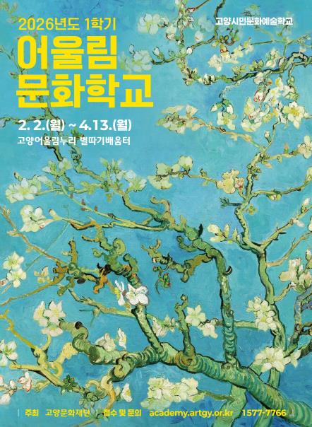 [뉴스앤톡] 고양문화재단이 운영하는 고양시민문화예술학교 '2026 어울림문화학교 1학기'가 2월 2일부터 4월 13일까지 진행된다. 이번 학기는 겨울의 끝자락에서 새로운 봄의 계절을 맞이하는 설렘을 담아 총 38개 프로그램 59개 반으로 운영된다.