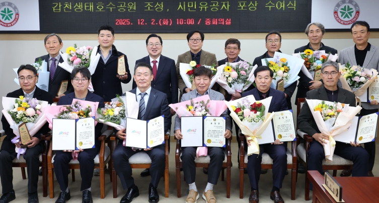 [뉴스앤톡] 대전시는 2일 시청 중회의실에서 갑천생태호수공원 조성에 이바지한 공사 관계 유공자에게 호수공원 추진 유공 표창장 및 감사패를 수여했다.