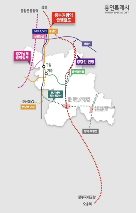 | ▲ 용인특례시에서 추진 중인 철도 노선 계획 |